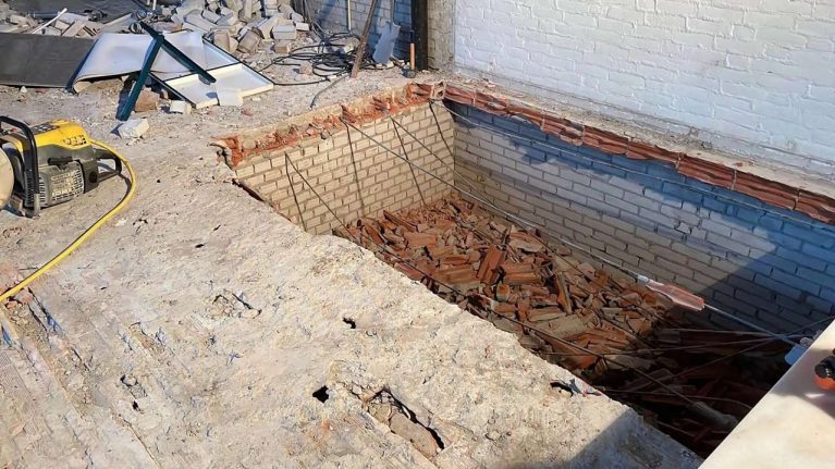 - Volledige verwijdering: We breken de vloer en vervangen deze door een schuimbetonvloer.